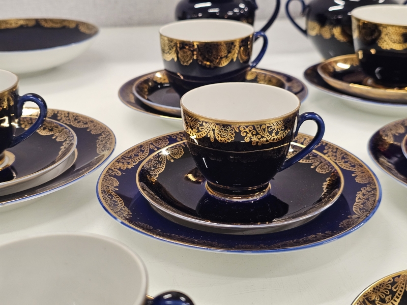 Kannusta puuttuu kansi. Yhdessä isommassa kupissa kolhu.