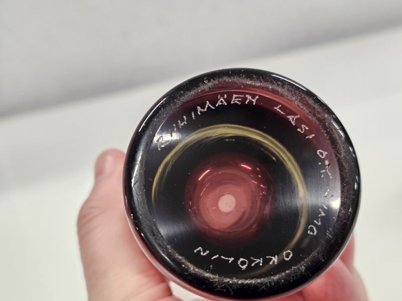 #405 Erä lasia: Mm. Puisto -maljakko, Aimo Okkolin Nimipäivä