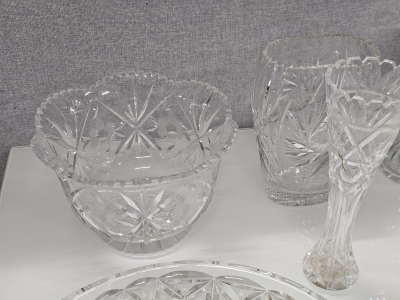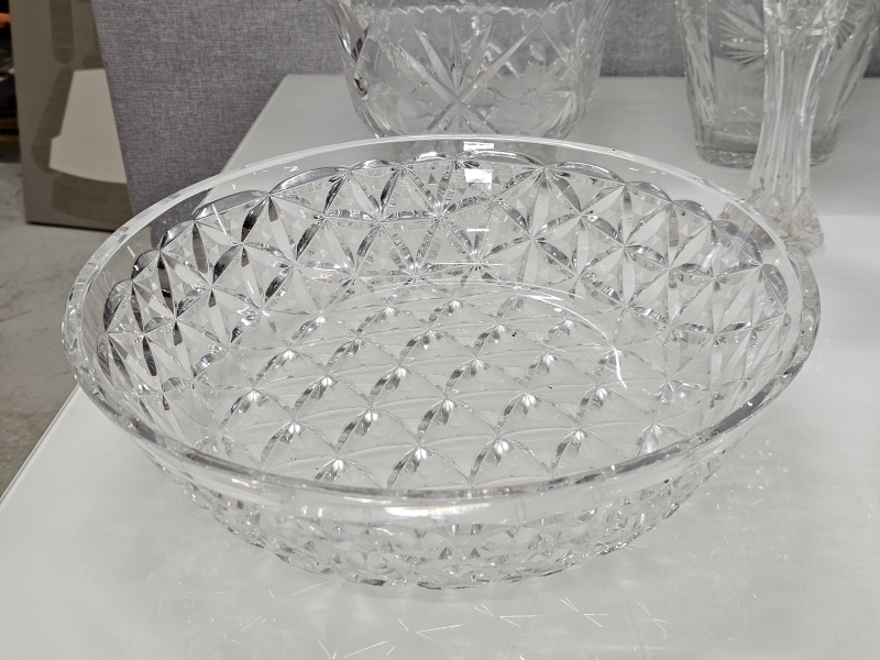 Isoimmissa maljoissa pienet kolhut. Isoin h: 35cm