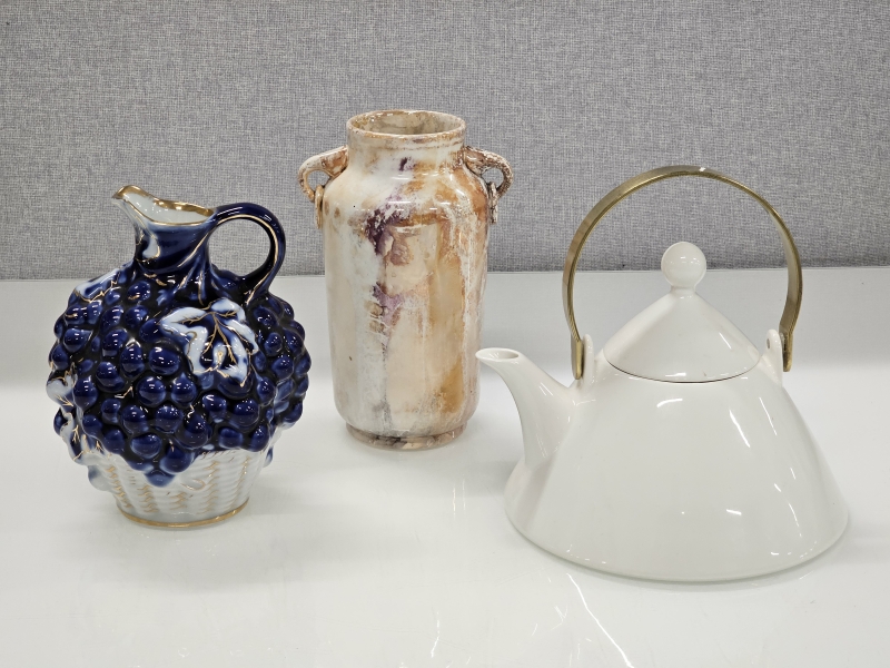 #736 Lomonosov kannu & Arabia lysteriposliinimaljakko ja Harlekin kahvikannu