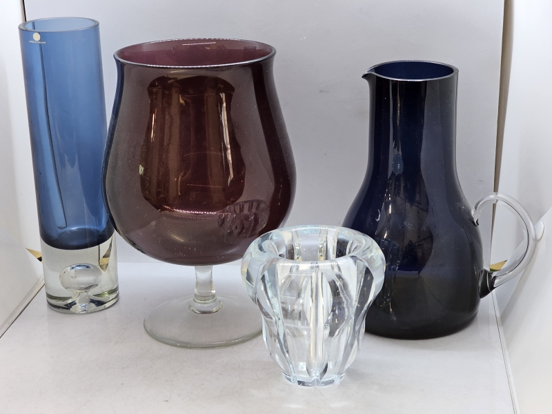 #418 4kpl lasiesineitä: Mm. Wirkkala maljakko, Franck kaadin ym.
