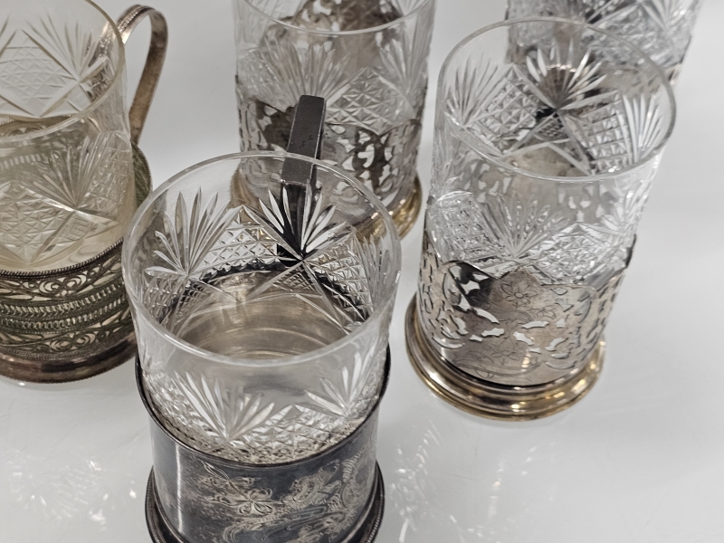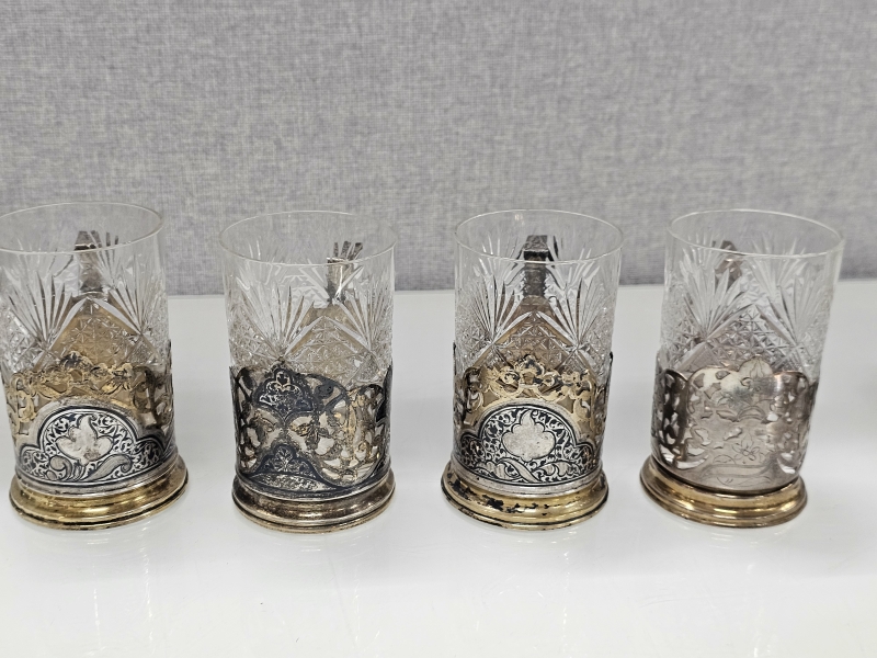 #1093 - 9kpl neuvostoliittolaisia kuumajuomalaseja joista ainakin 4kpl hopeisia