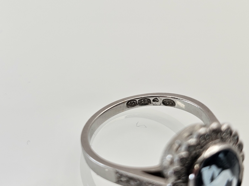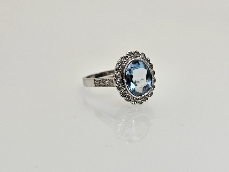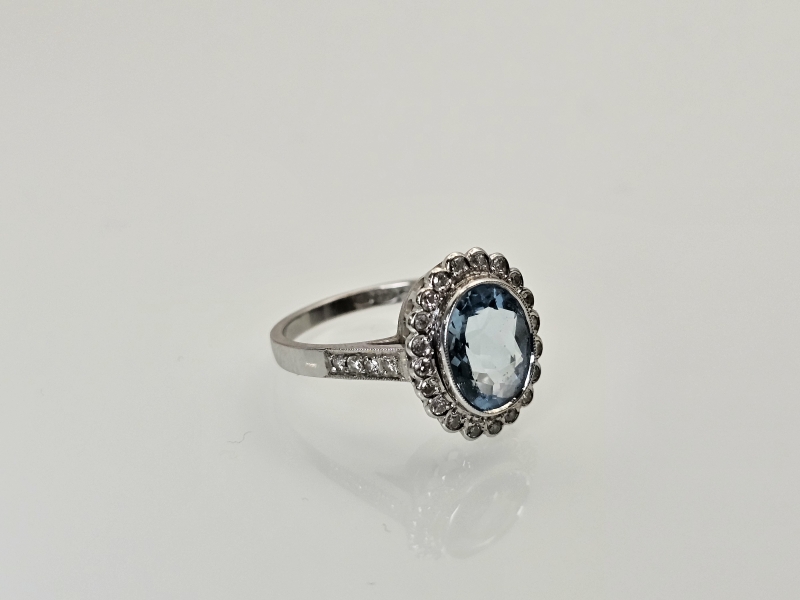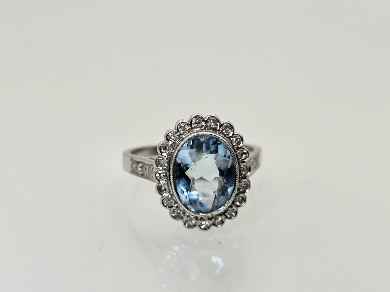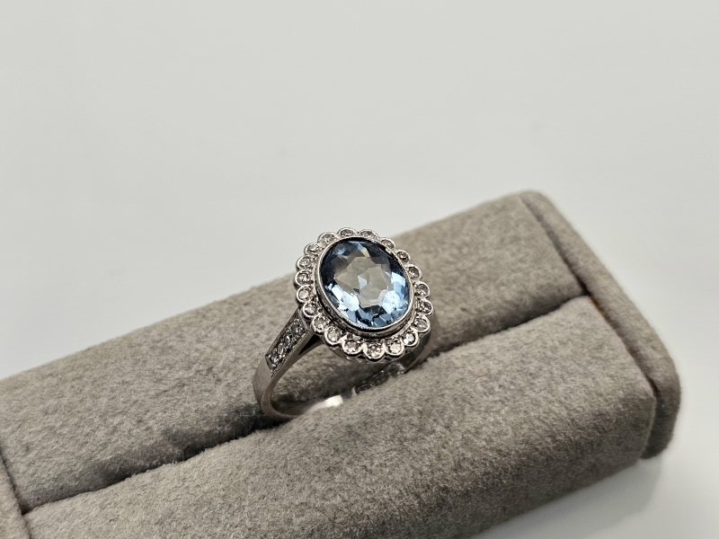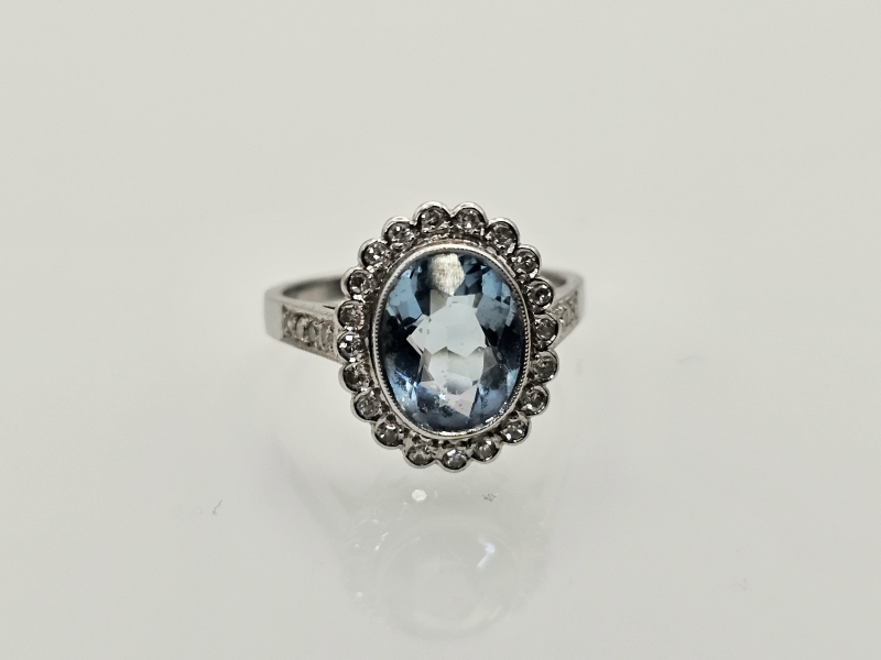 #1119 18k valkokultainen sormus 1,94ct akvamariinilla ja timanteilla, 4,54g