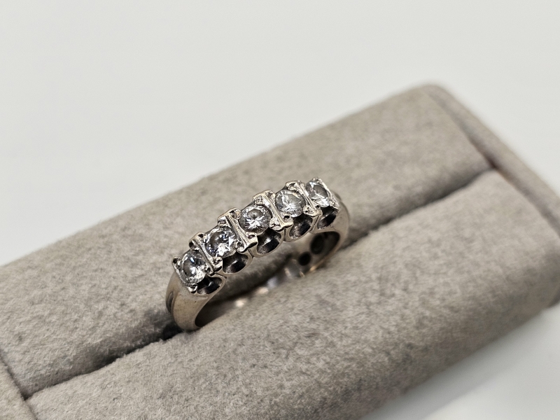 #1120 14k valkokultainen sormus viidellä timantilla [yht. 0,50ct], 4,9g