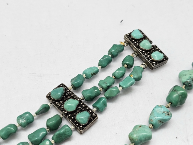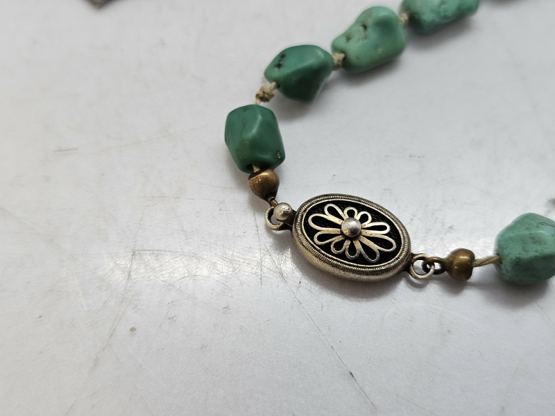 #1142 - Kaulakoru ja rannekoru, hopea / turkoosit