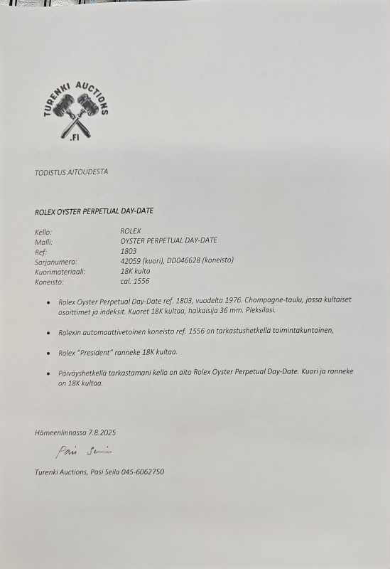 #1157 18k kultainen Rolex Oyster Perpetual Day-Date rannekello, 116,17g