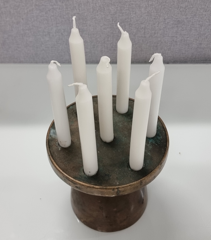 #1683 Pronssinen kynttilänjalka massiivisella kääntöjalustalla, Pronssivalu Oy, Hämeenlinna