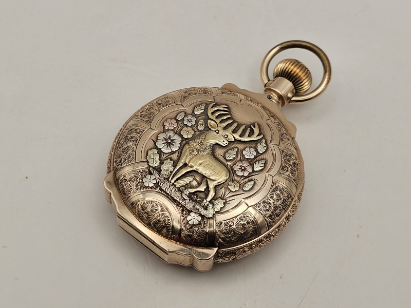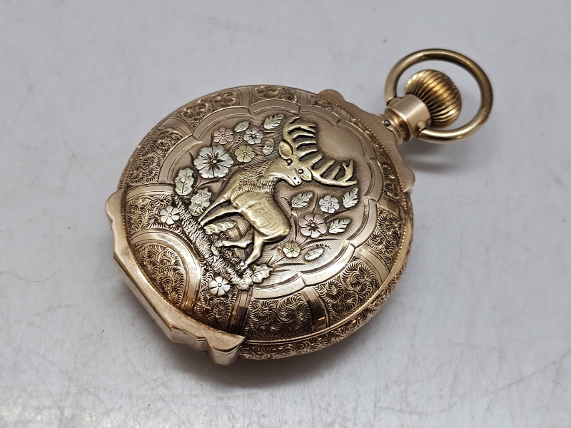 #1049 14k monivärikultainen Waltham taskukello v. 1902, 158,82g