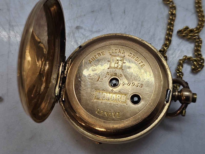 #1246 14k kultainen avainvetoinen Monard kaulakello, 31,4g + perät