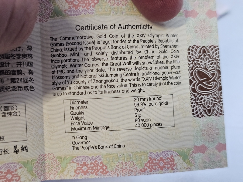 #1324 - 2kpl Peking 2022 kultakolikoita, yhteensä 10g