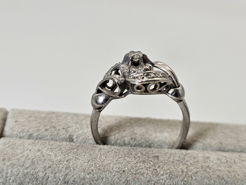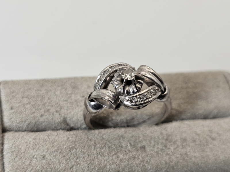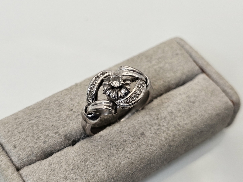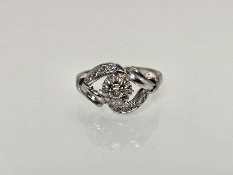 #1371 - 14k valkokultainen sormus timanteilla, 4,58g