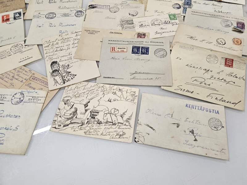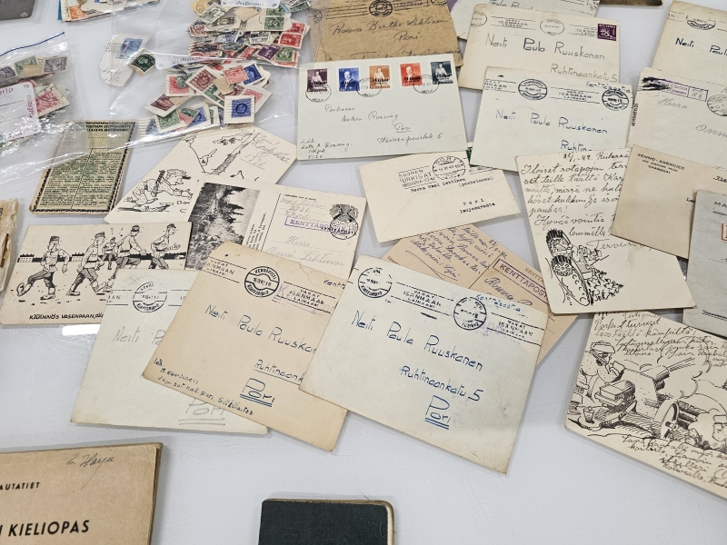 #2355 - Erä valokuvia, postimerkkejä ja -kortteja: Mm. Kenttäpostia