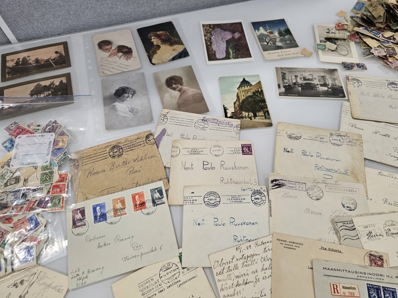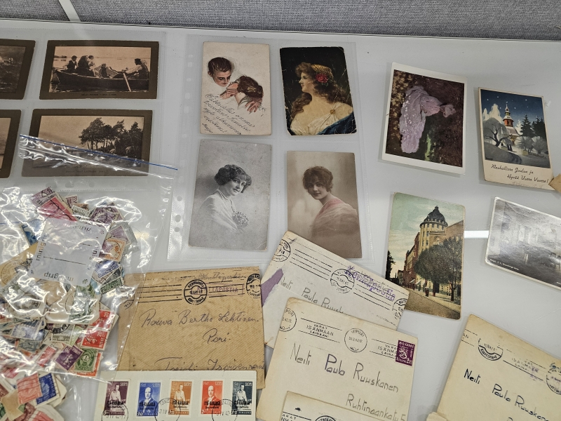 #2355 Erä valokuvia, postimerkkejä ja -kortteja: Mm. Kenttäpostia