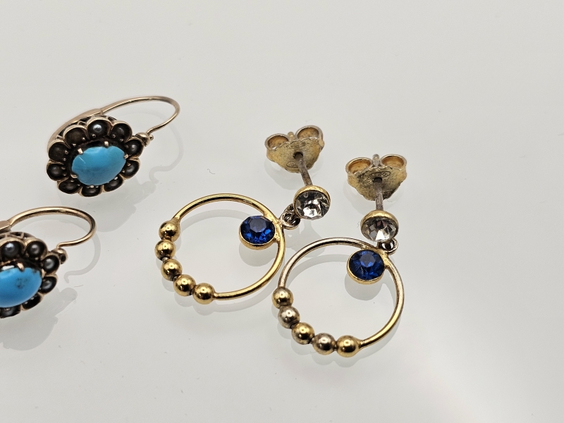 #1373 - 14k kultaiset korvakorut, 2,82g + hopeiset kullatut korvakorut
