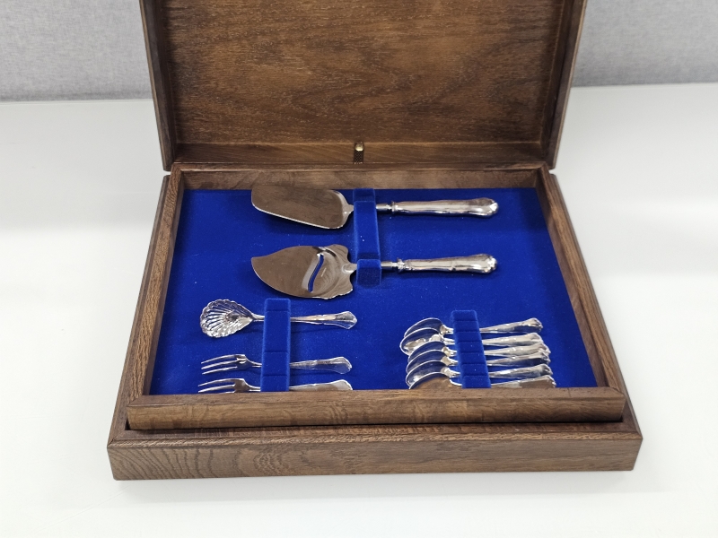 #1410 Hopeinen chippendale aterinsarja KOP-logolla