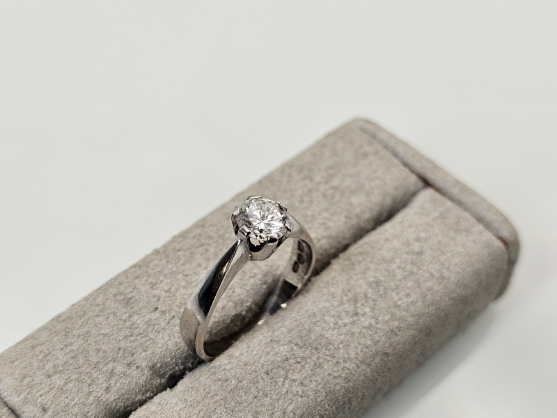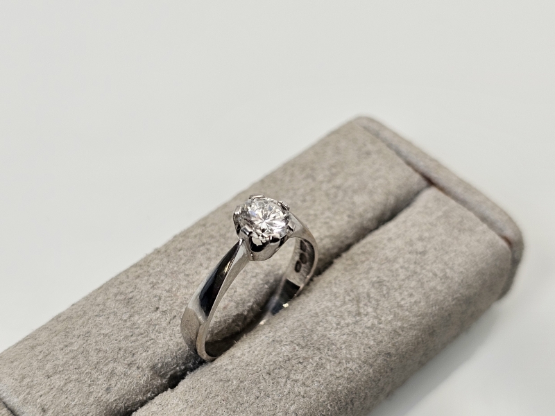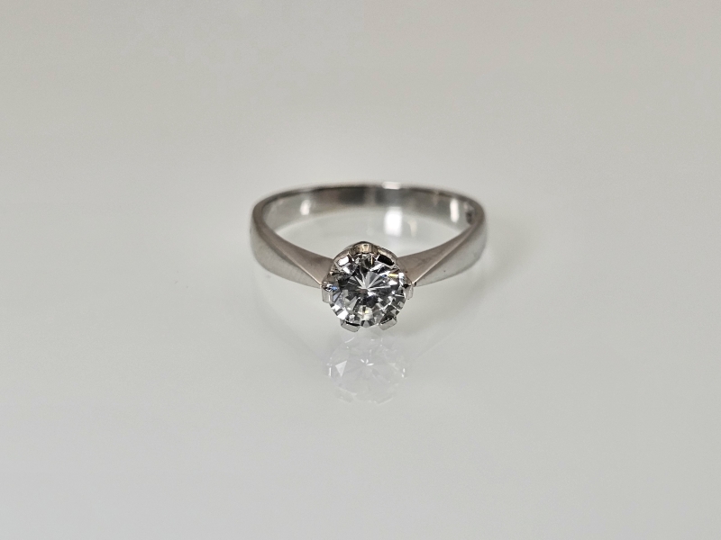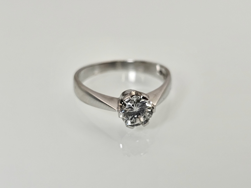 #1385 14k valkokultainen sormus 0,70ct timantilla 3,08g