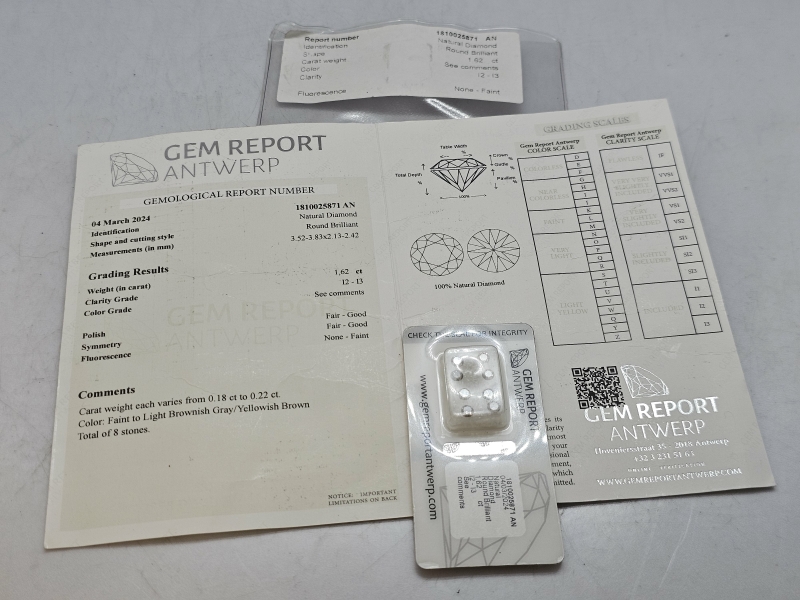 #1401 - 8kpl timantteja, 0,18ct - 0,22ct / kpl, yhteensä 1,62ct