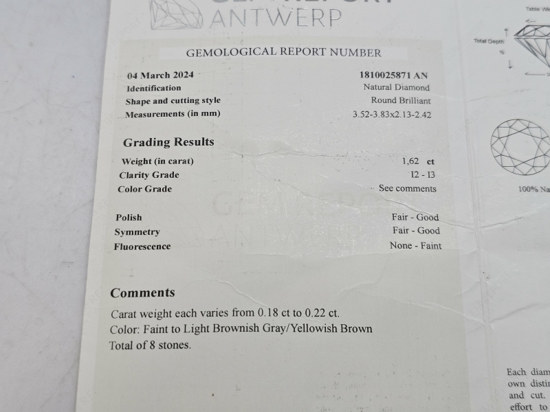 #1401 8kpl timantteja, 0,18ct - 0,22ct / kpl, yhteensä 1,62ct