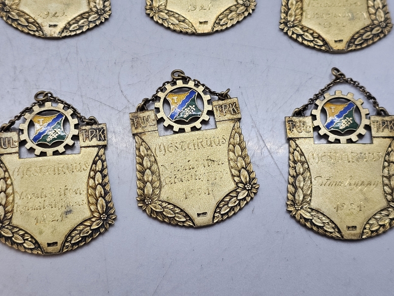 #1402 - 10kpl hopeisia TUL-TPK mestaruuskilpiä vuosilta 1920-21