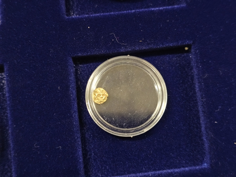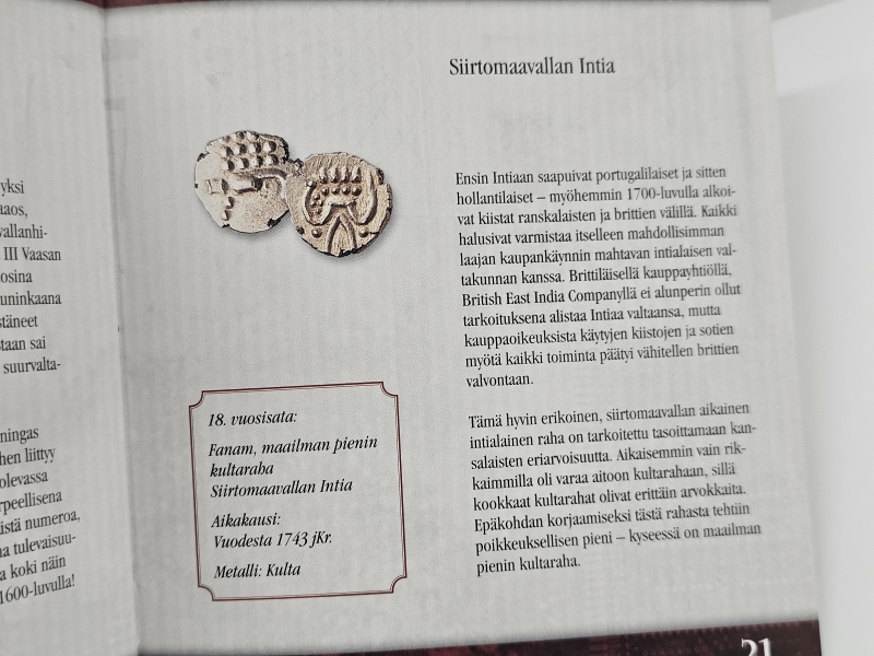 Sis. mm kiinalaisen Wang Mang -lapiorahan, maailman pienimmän Fanam-kultarahan [paino 0,38g] ja Suomen v. 2000 100mk