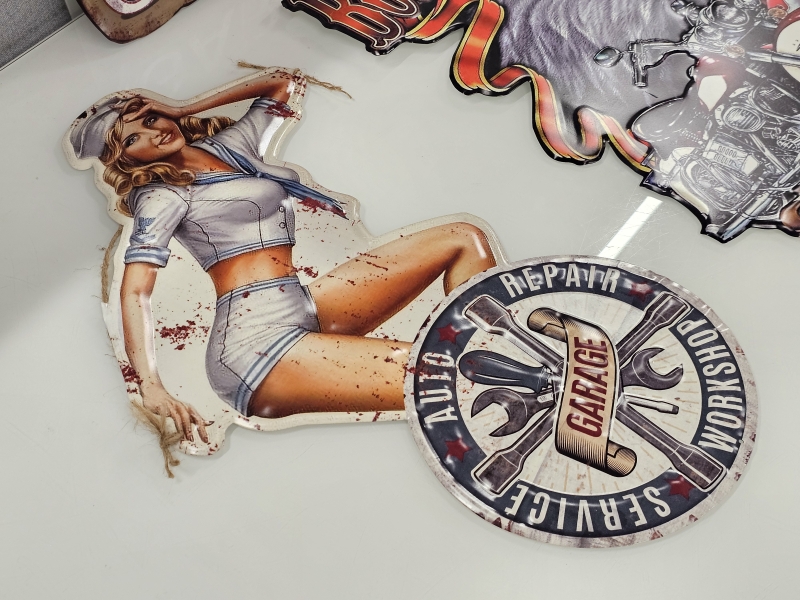 #2358 - 3kpl peltisiä isoja sisustuskylttejä