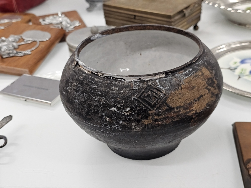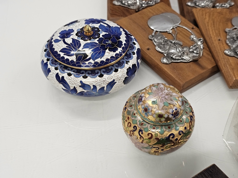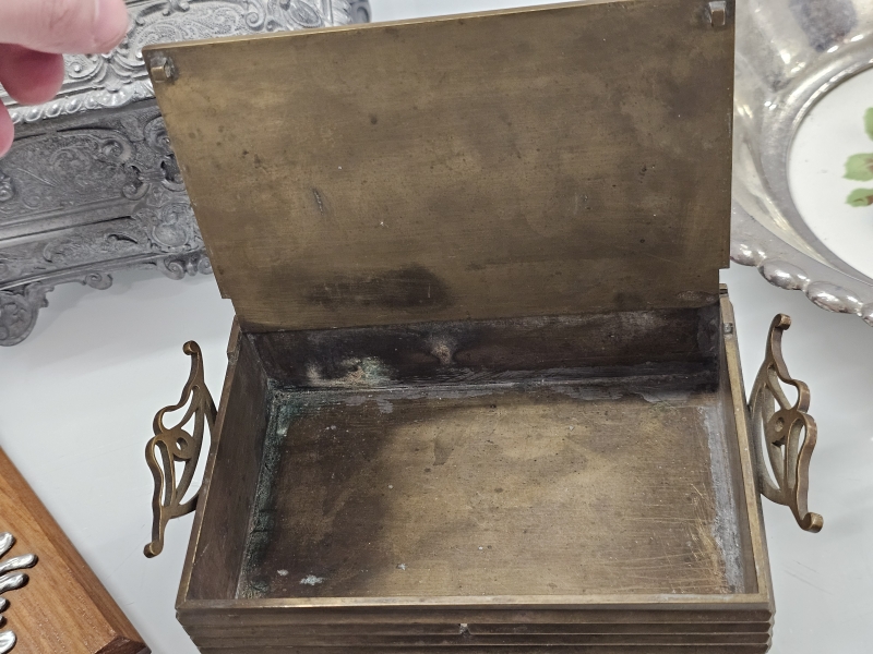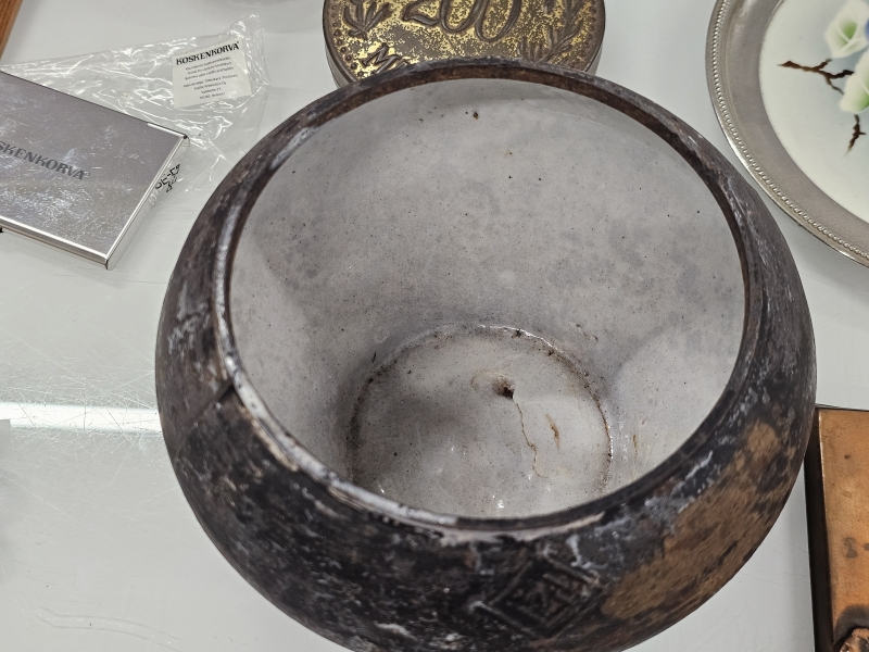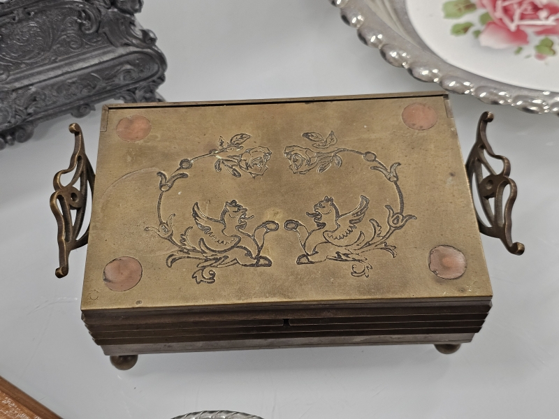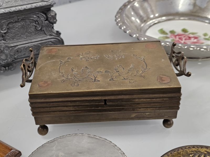 #2132 - Erä metalliesineitä: Mm. näyttävä rasia, Pesis-palkinto, cloisonnea, tinasotilaita ym.