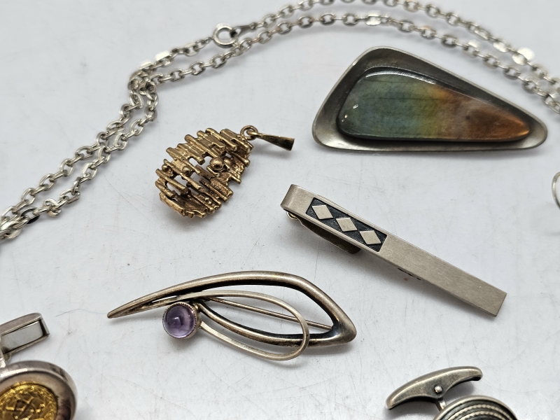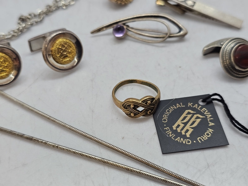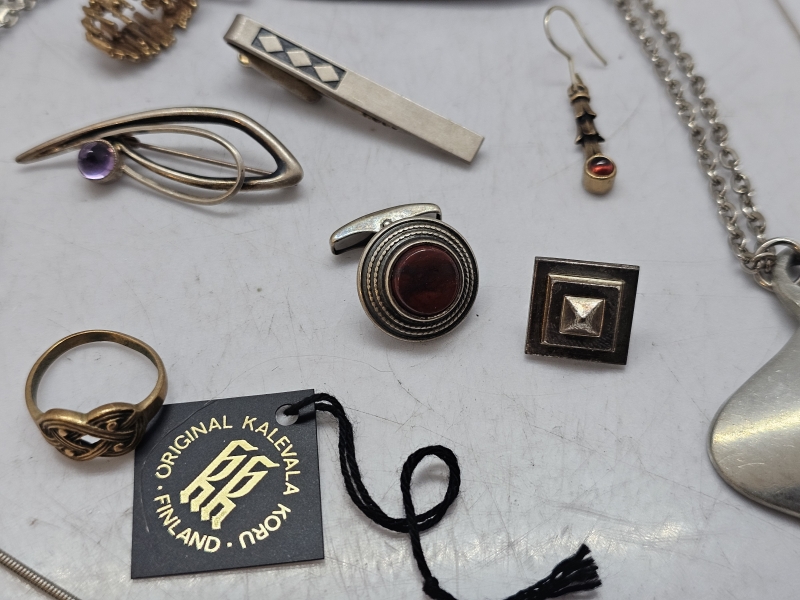 #1417 - Erä designkoruja, mm. hopeaa, Kalevala koru ym.