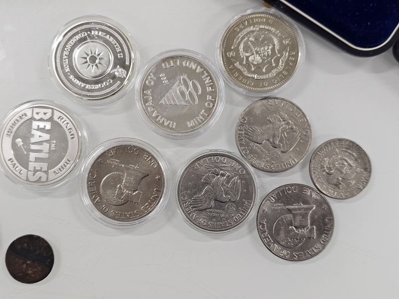 #1422 - Erä juhlarahoja, rahasarjoja ym,: Mm. USA