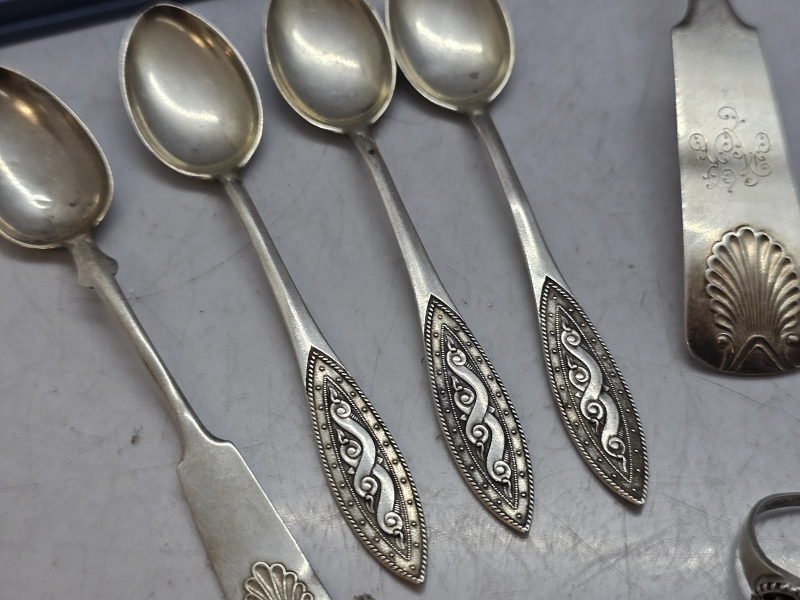 #1423 - Erä hopeaa: Mm. Sormus, lusikoita, ottimet