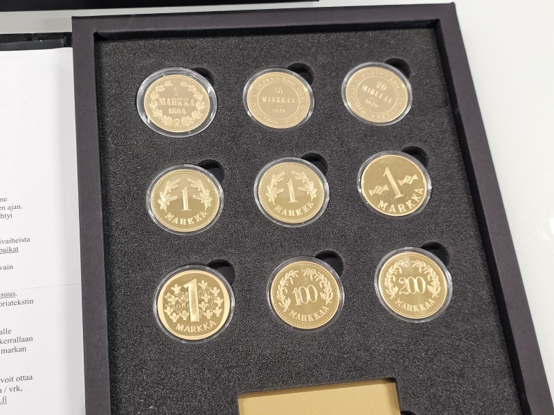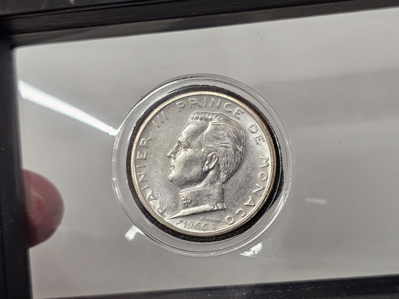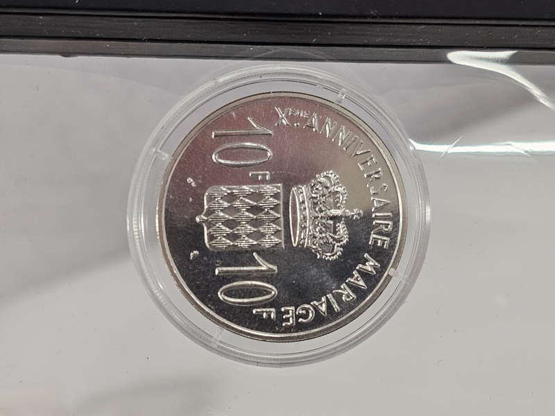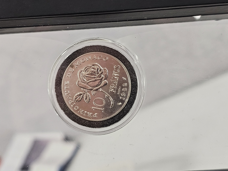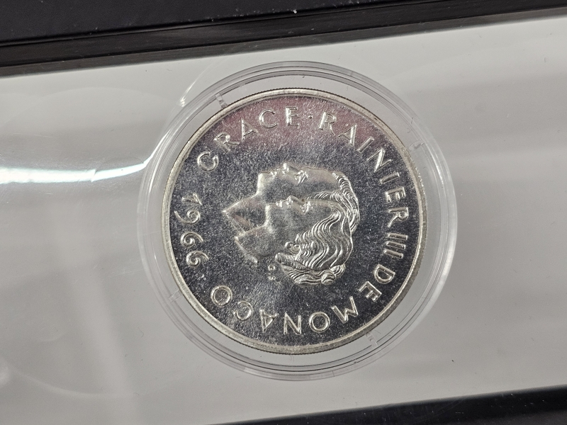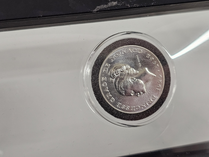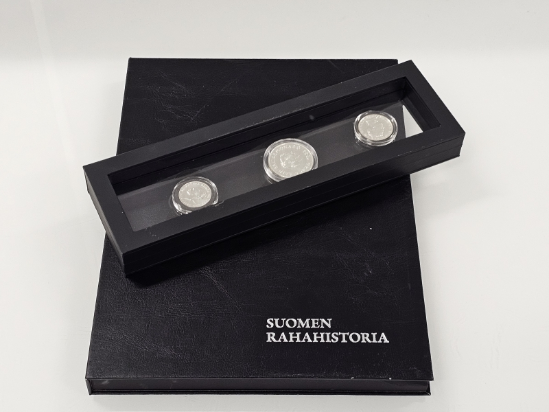 #1433 3kpl hopeisia Grace Kelly / Rainier III kolikoita + numeroitu Suomen rahahistoria muistolyöntisarja
