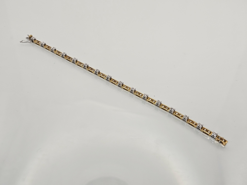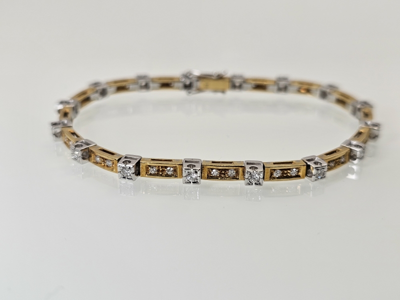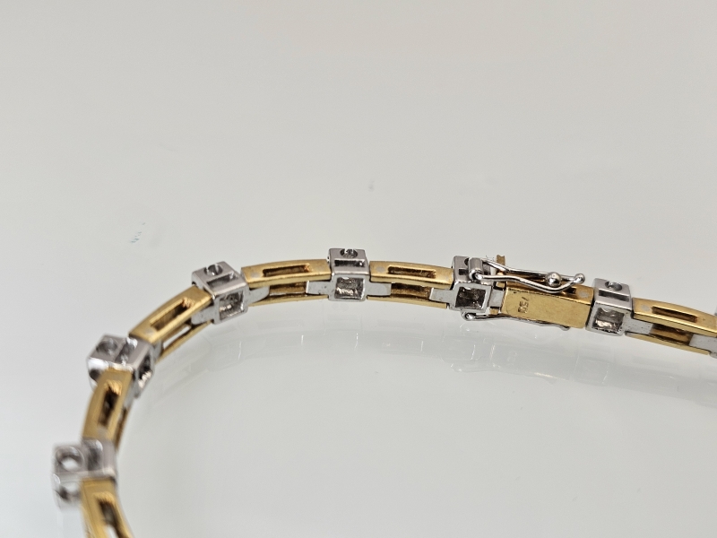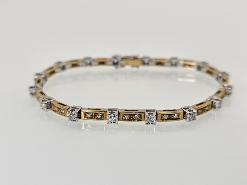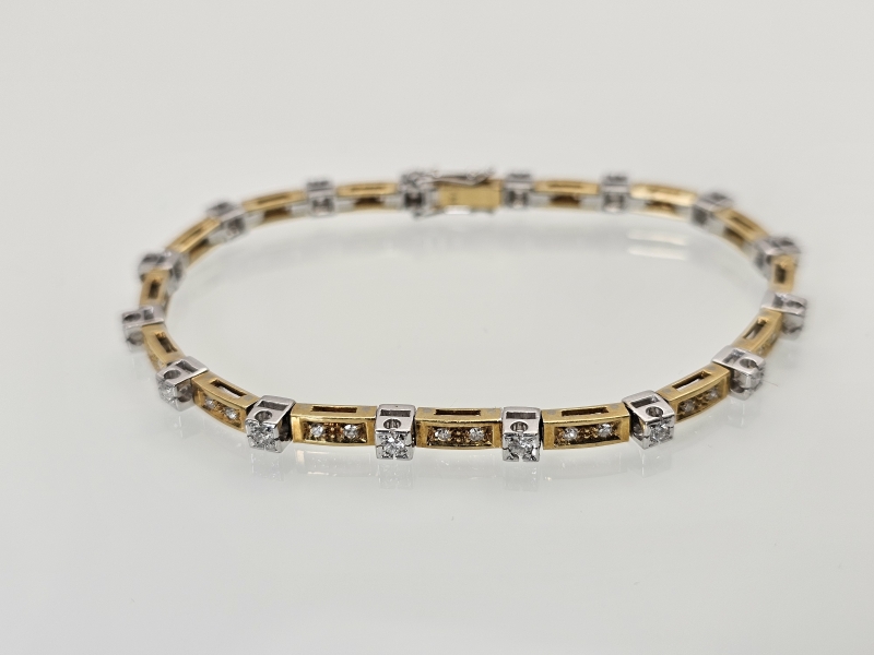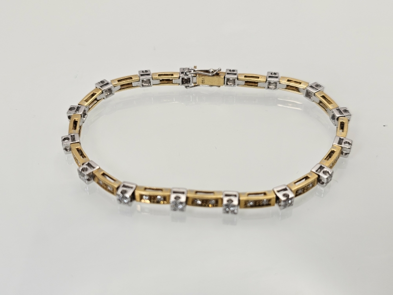 #1444 14k kelta- / valkokultainen rannekoru timanteilla, 13,9g