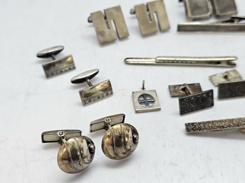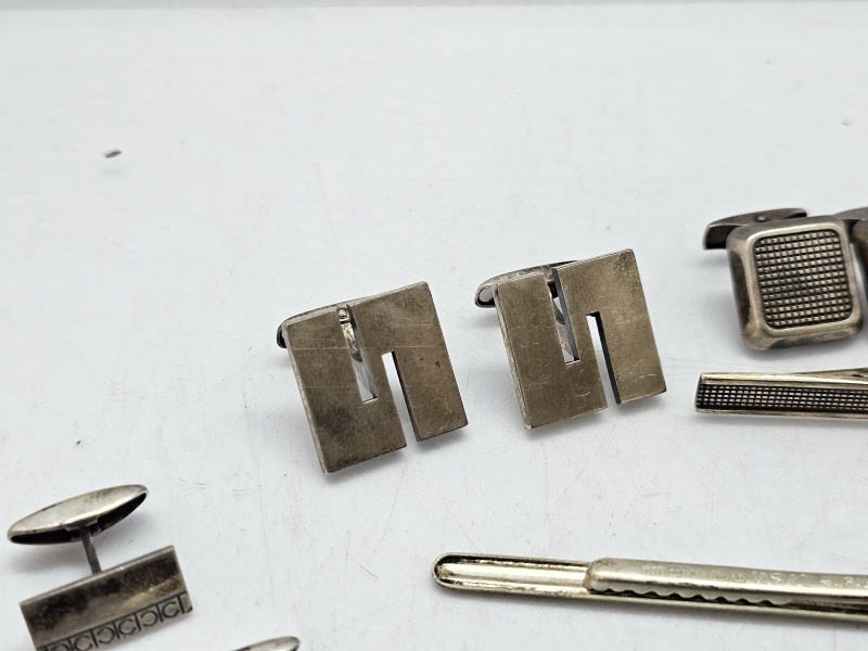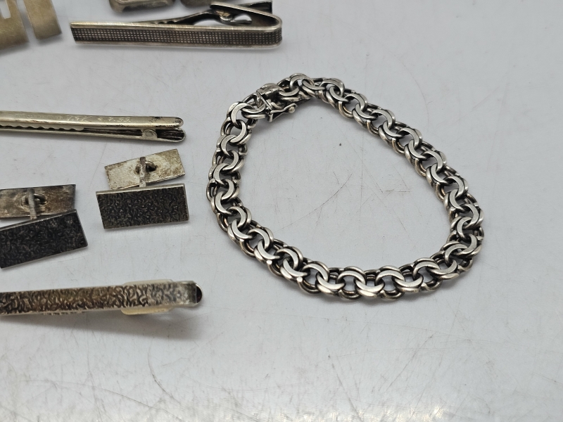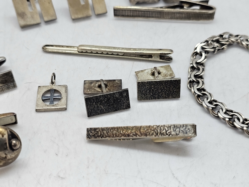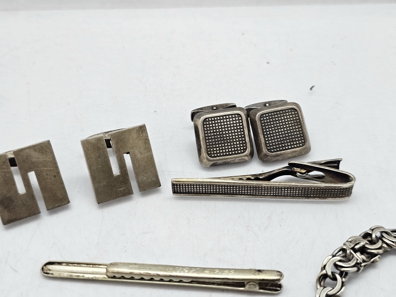 #1467 Erä hopeisia koruja: Mm. kalvosinnappeja, ranneketju ym.