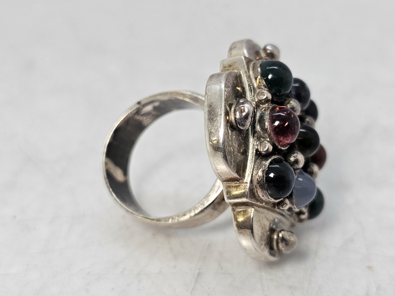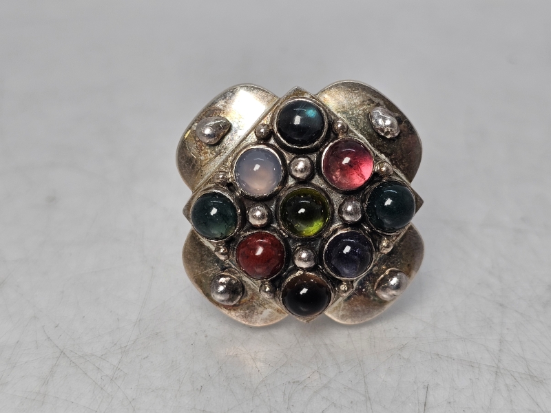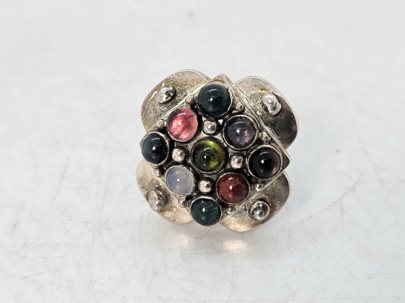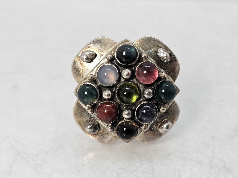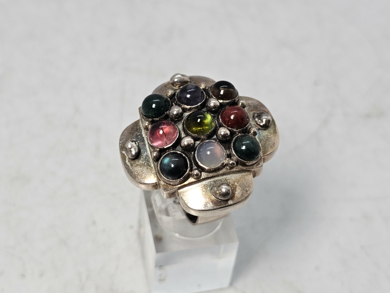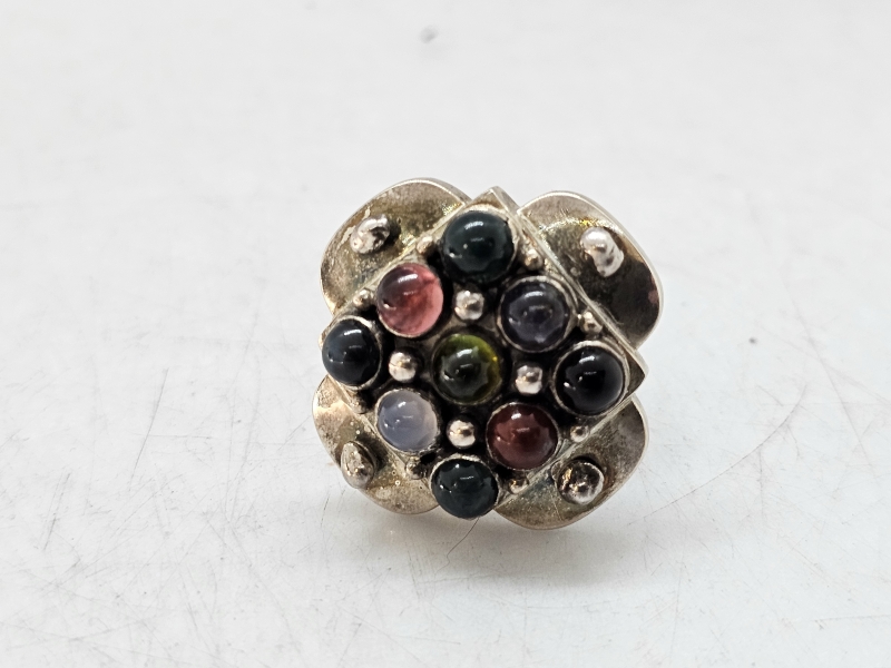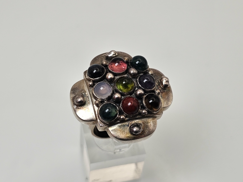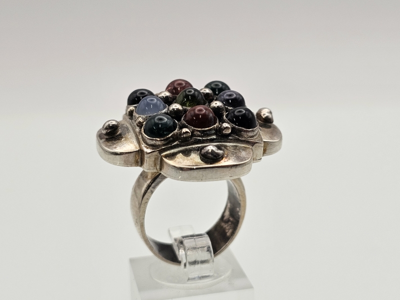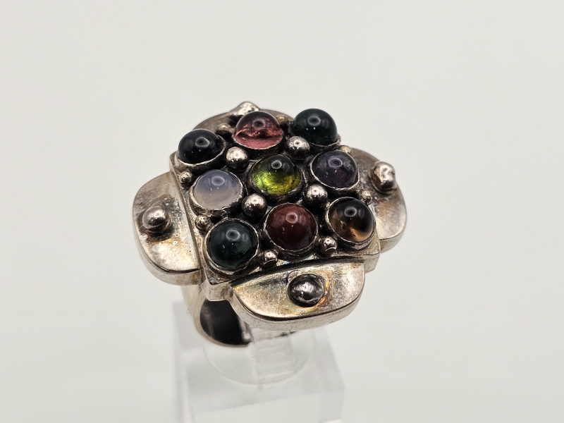 #1471 - Saara Hopea hopeinen sormus puolijalokivillä, valmistaja Ossian Hopea 1960-luku
