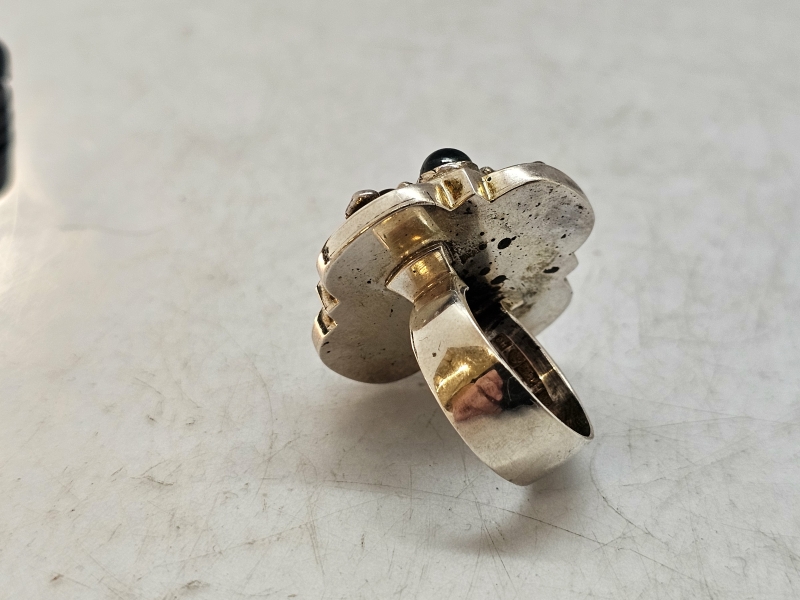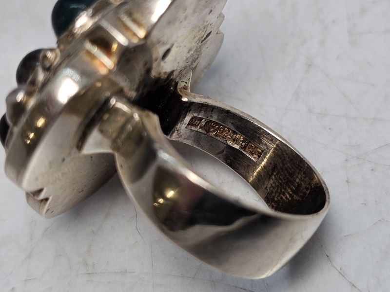 #1471 Saara Hopea hopeinen sormus puolijalokivillä, valmistaja Ossian Hopea 1960-luku