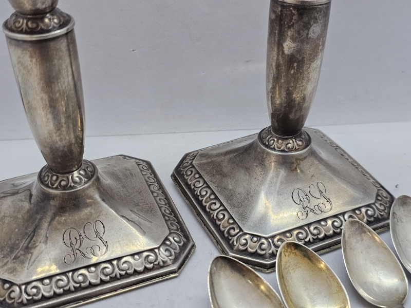 #1480 Erä hopeaa: Mm. kynttilänjalat