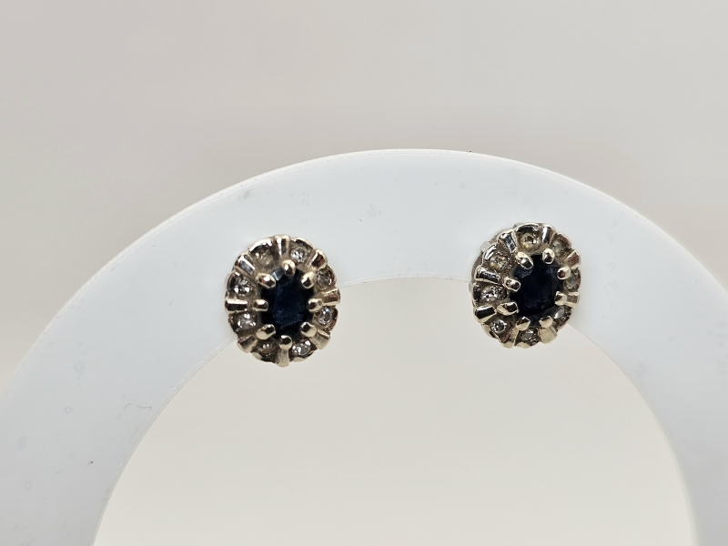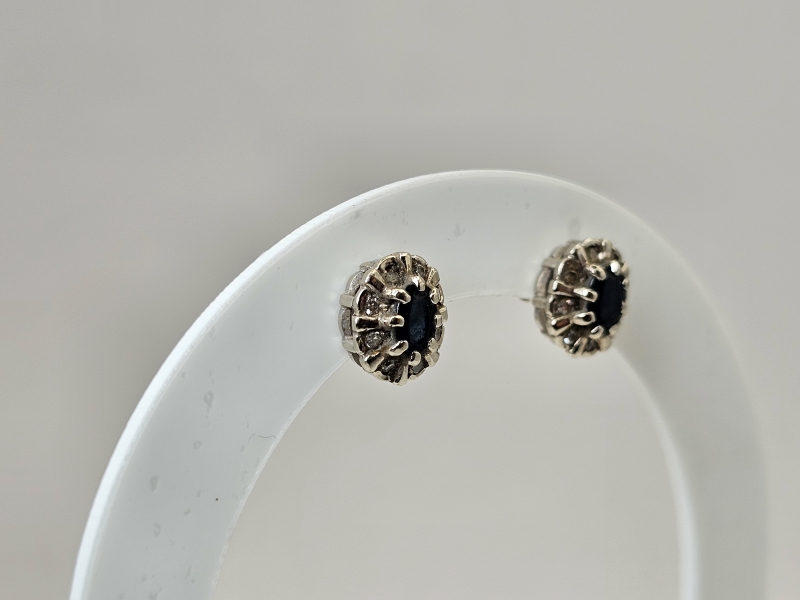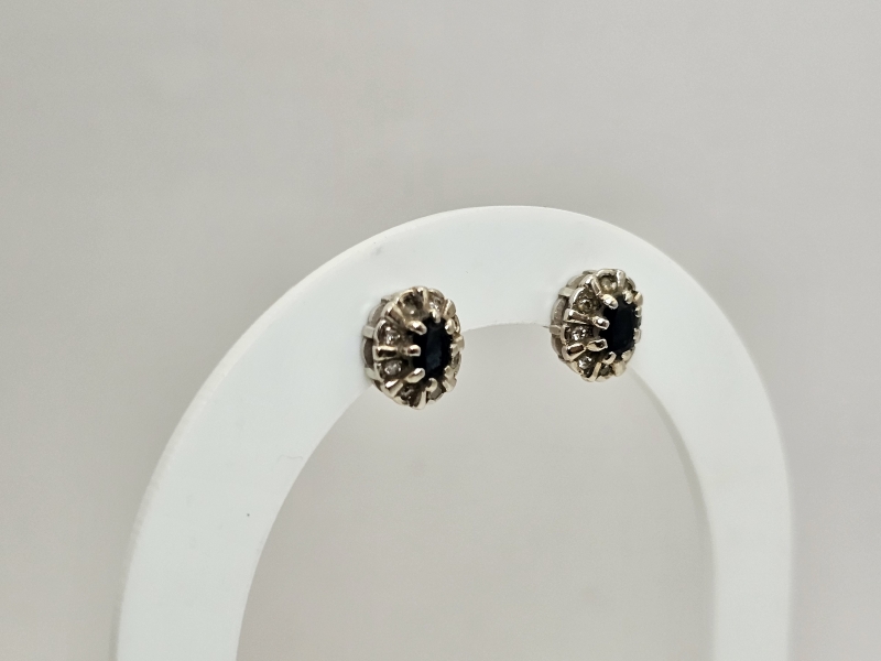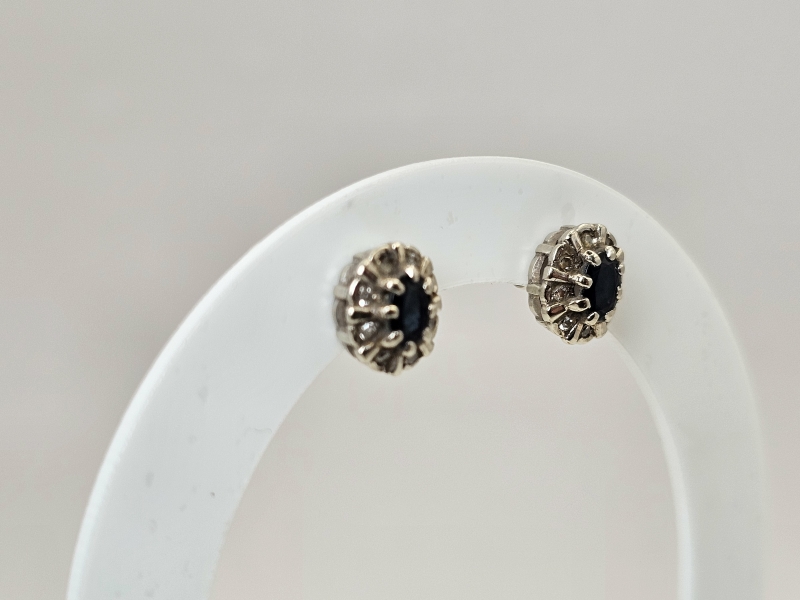 #1491 14k valkokultaiset korvakorut sinisafiireilla ja timanteilla, 2,6g