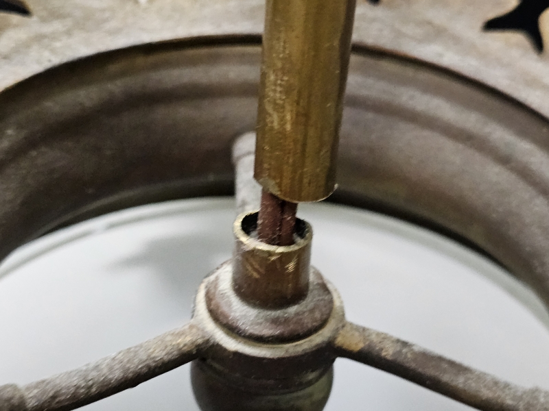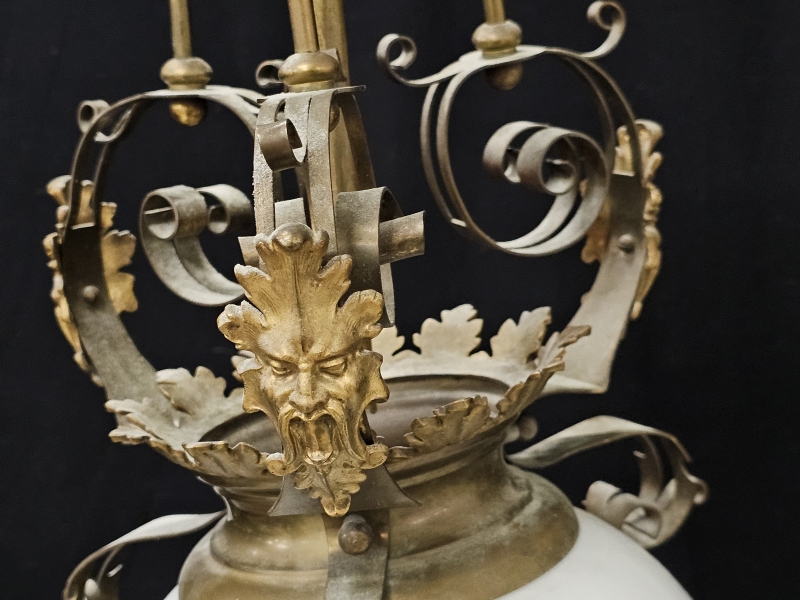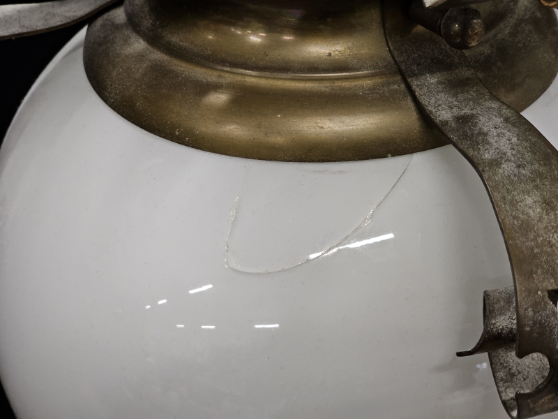 Lasissa liimaus, kattokiinnikkeessä vikaa, runko katkaistu joskus. K: 70cm