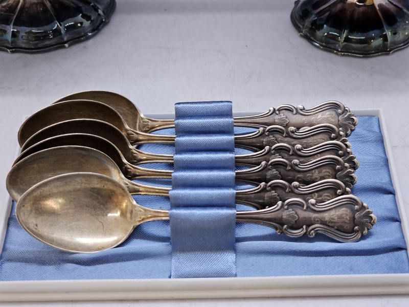 #1512 Hopeiset sokerikko ja kermakko + 6kpl kahvilusikoita