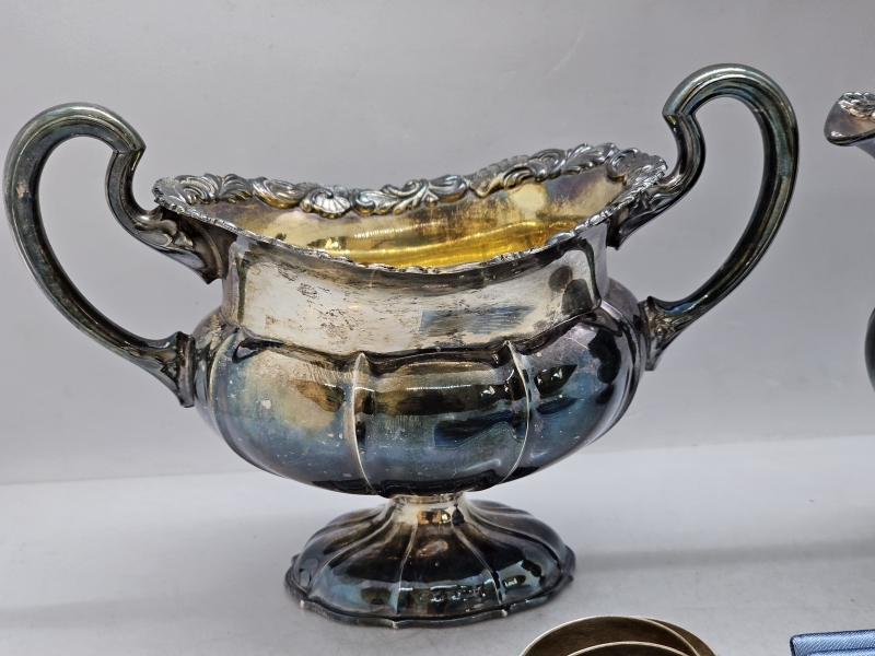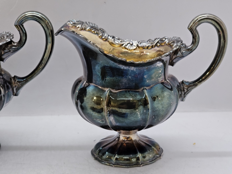 #1512 - Hopeiset sokerikko ja kermakko + 6kpl kahvilusikoita