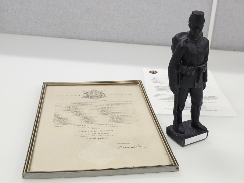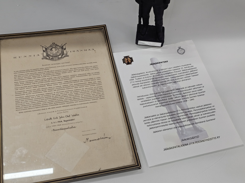 #1743 - Metallinen jääkäripatsas, Lauri Leppänen + myöntökirja