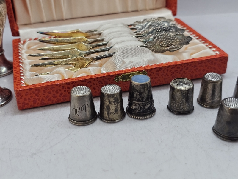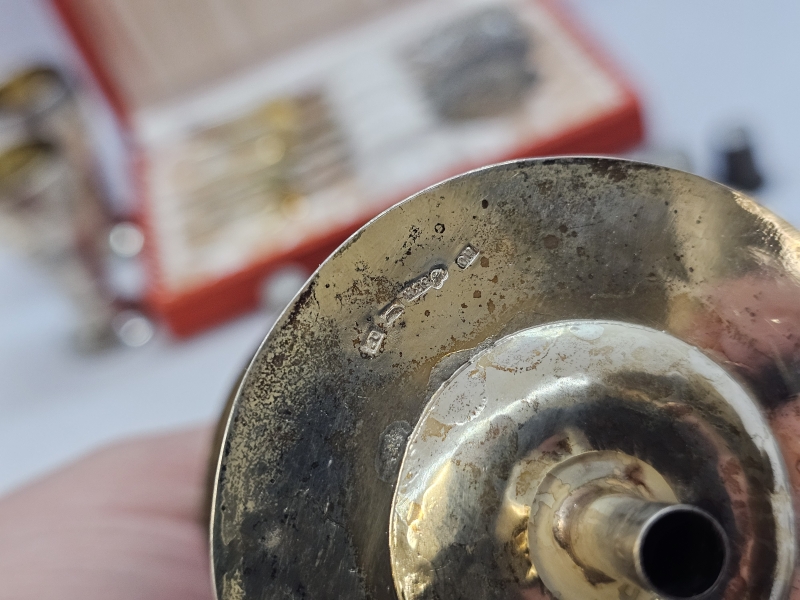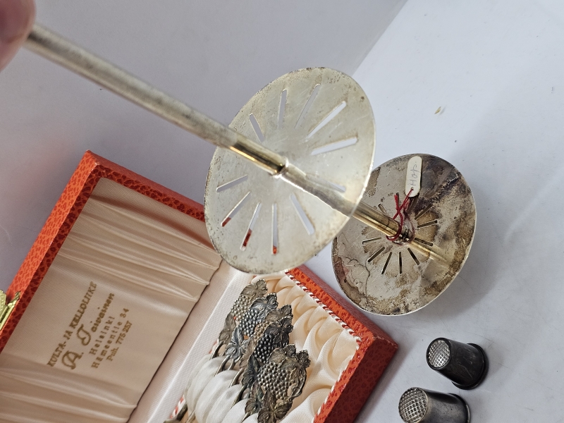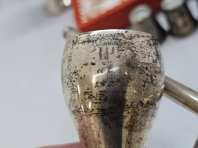 #1503 - Erä hopeaa: Mm. pienet pokaalit, sormustimia, veitsitelineen osa