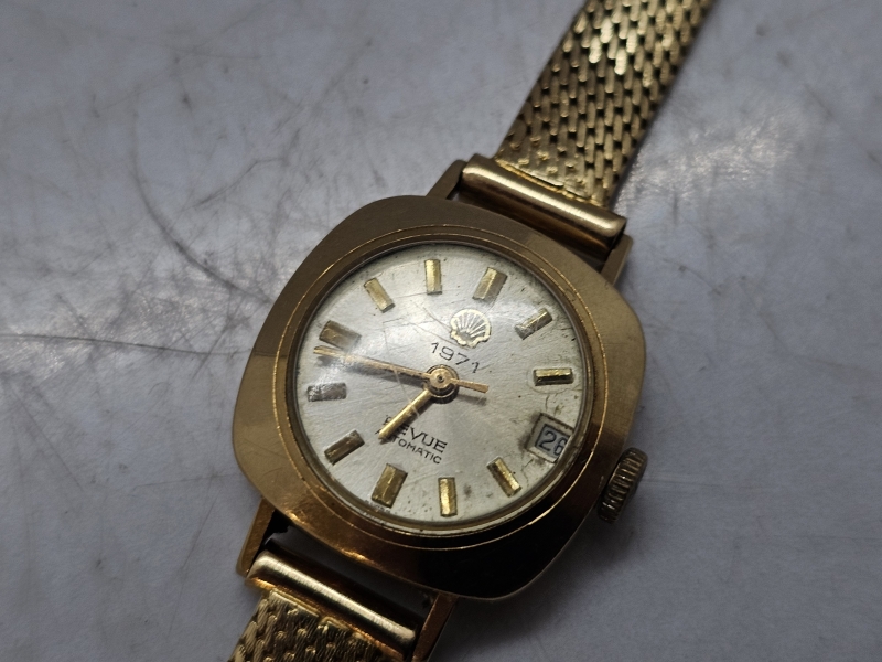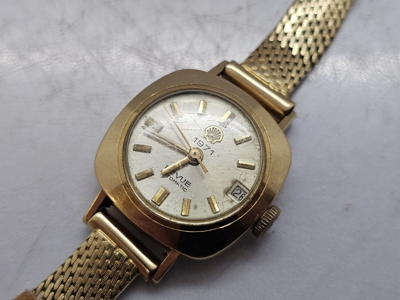 #1504 Rannekello: 14k kultainen Revue Automatic Shell 1971, 25g