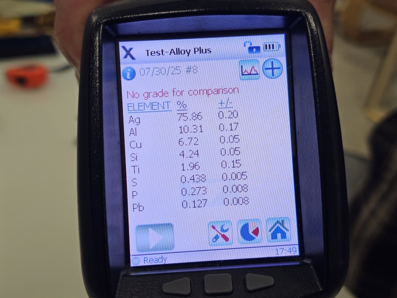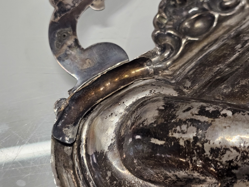 Paino 255g. Pitoisuus 12/16 Lot. eli noin 750/1000 hopeaa. Leveys 37,5cm
