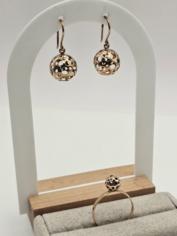 #992 14k kultainen Liisa Vitali sormus & korvakorut, 3,56g