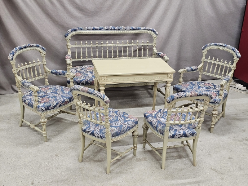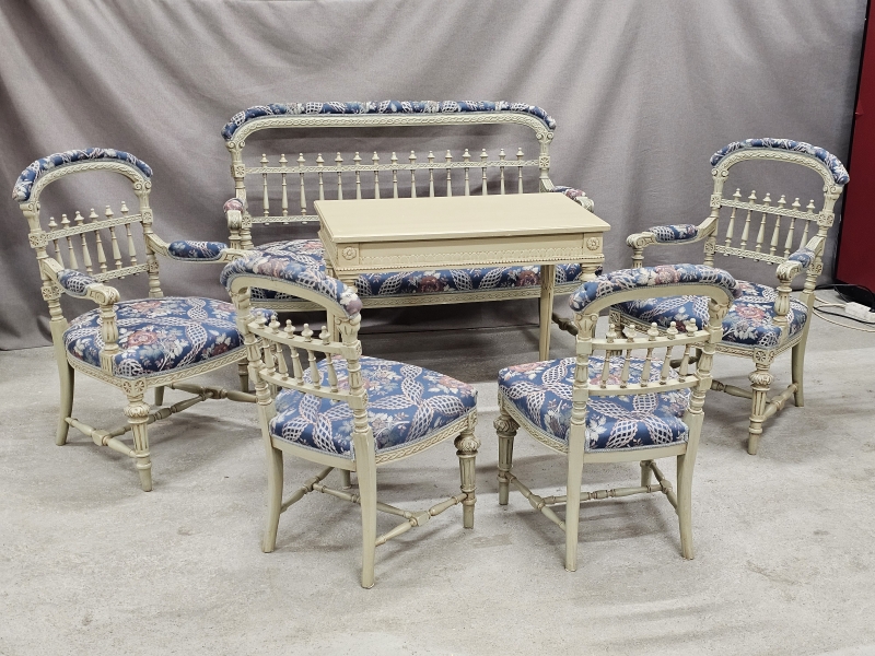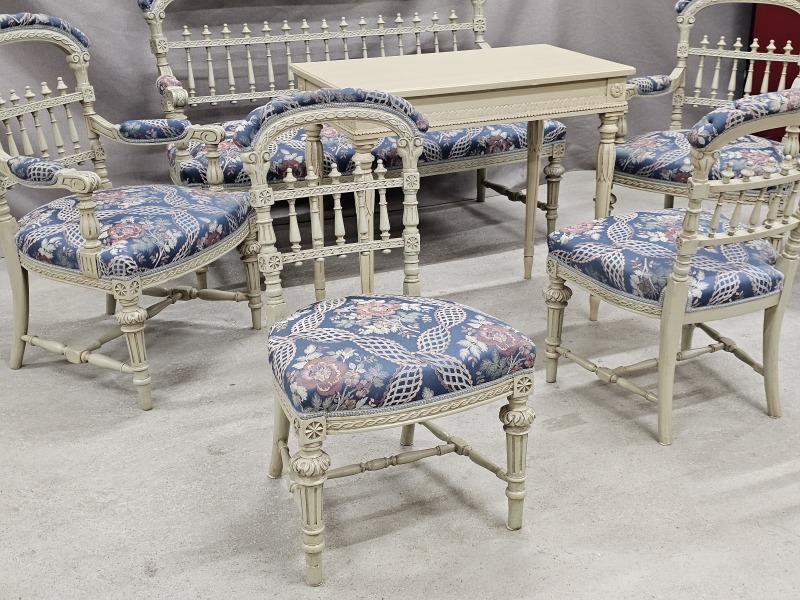 #1932 1800-luvun sohvaryhmä: Sohva, 2+2kpl tuoleja ja sohvapöytä
