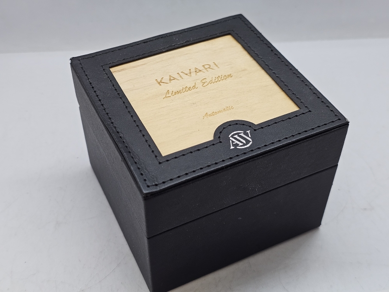 Laatikko Kaivari -kellosta. Tuntuisi toimivan. Halkaisija 43mm