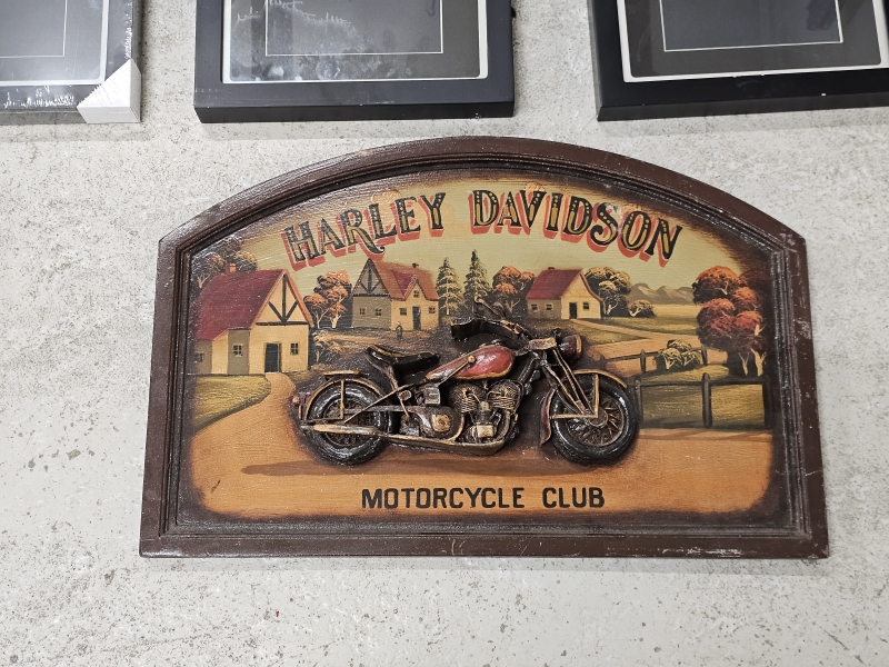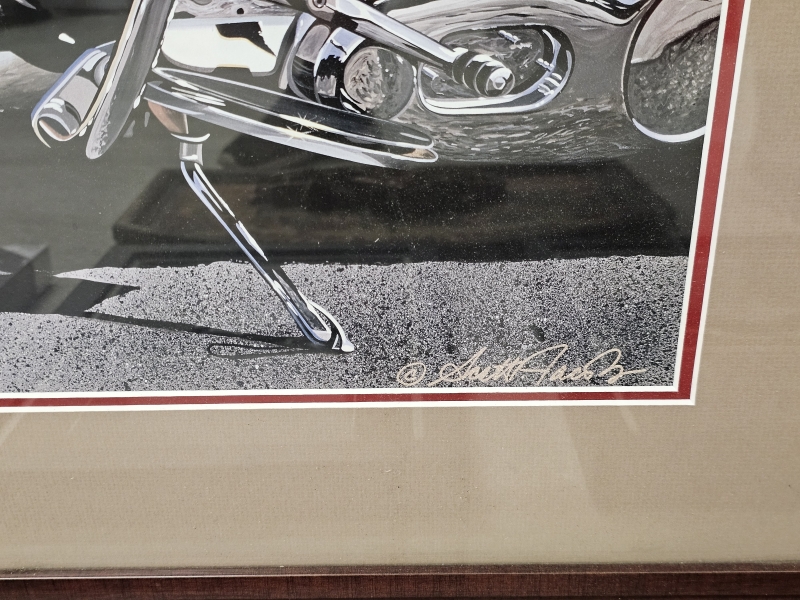 #2378 - Harley-Davidson esineitä: Scott Jacobs printtitaulu + puutaulu + 3kpl kehyksiä