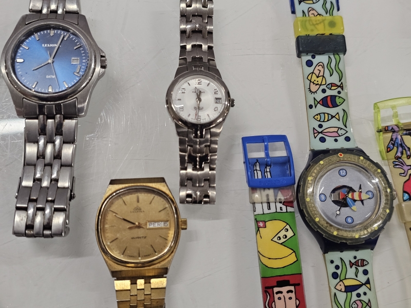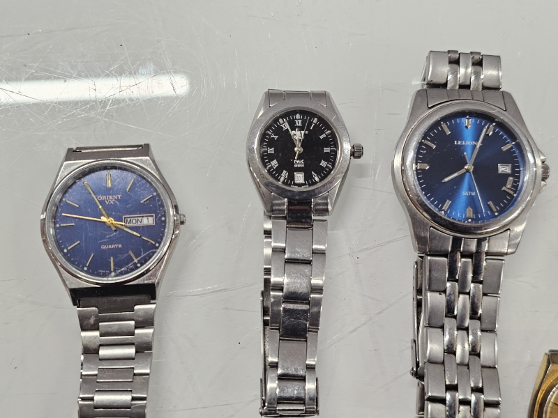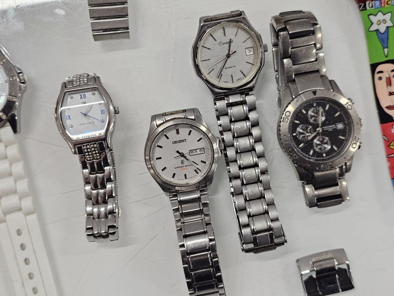 #932 Erä kelloja: Mm. Hilfiger, Orient, Leijona, Cardinal