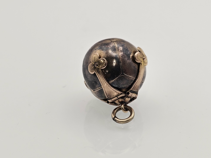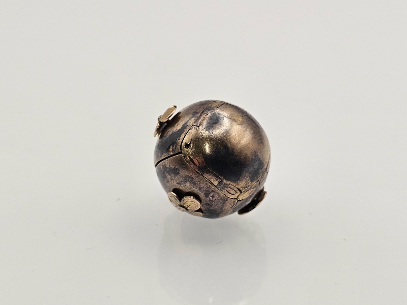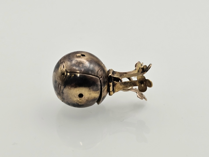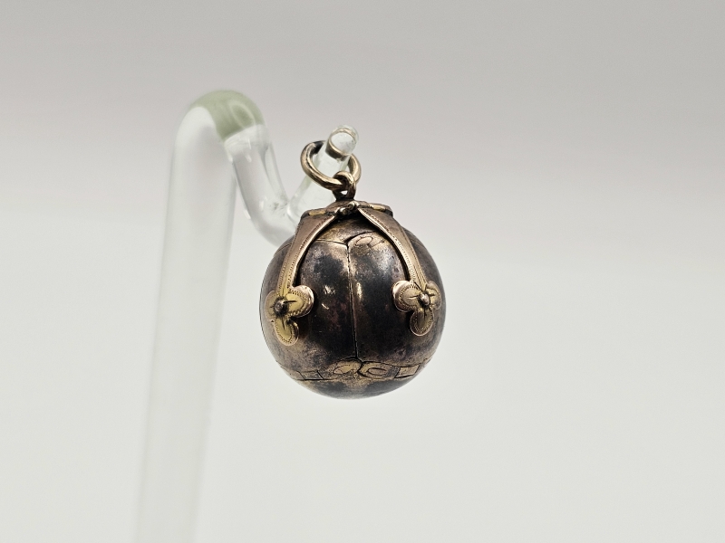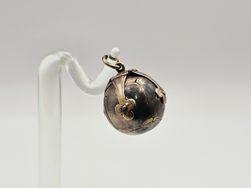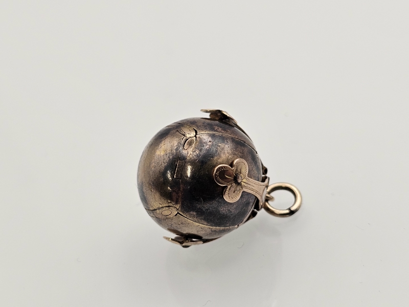 #1588 Hieno 9k kulta / hopea palloriipus josta aukeaa risti