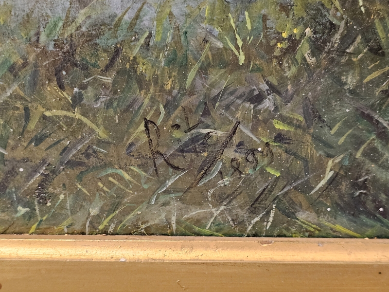 #2022 Iso vanha öljyvärimaalaus, signeerattu mahdollisesti Rita tai Rito 1899